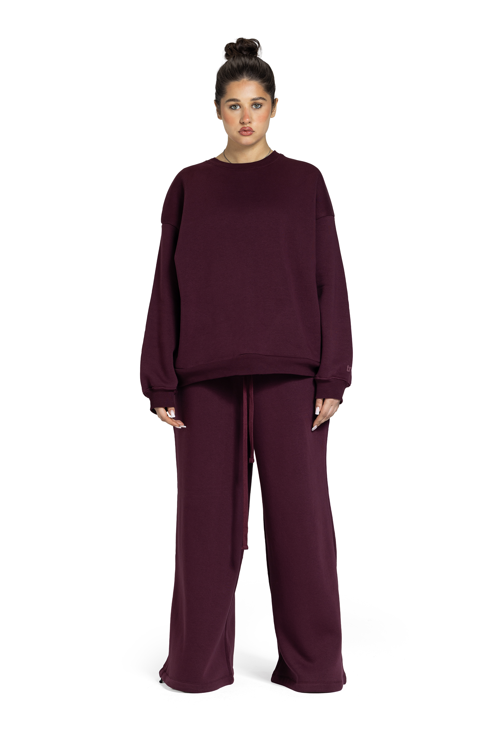 Oversized unisex crewneck sweatshirt in soft cotton milton fabric. Designed with a relaxed silhouette and long sleeves for everyday comfort. Features a classic ribbed neckline, cuffs, and hem for a structured finish.