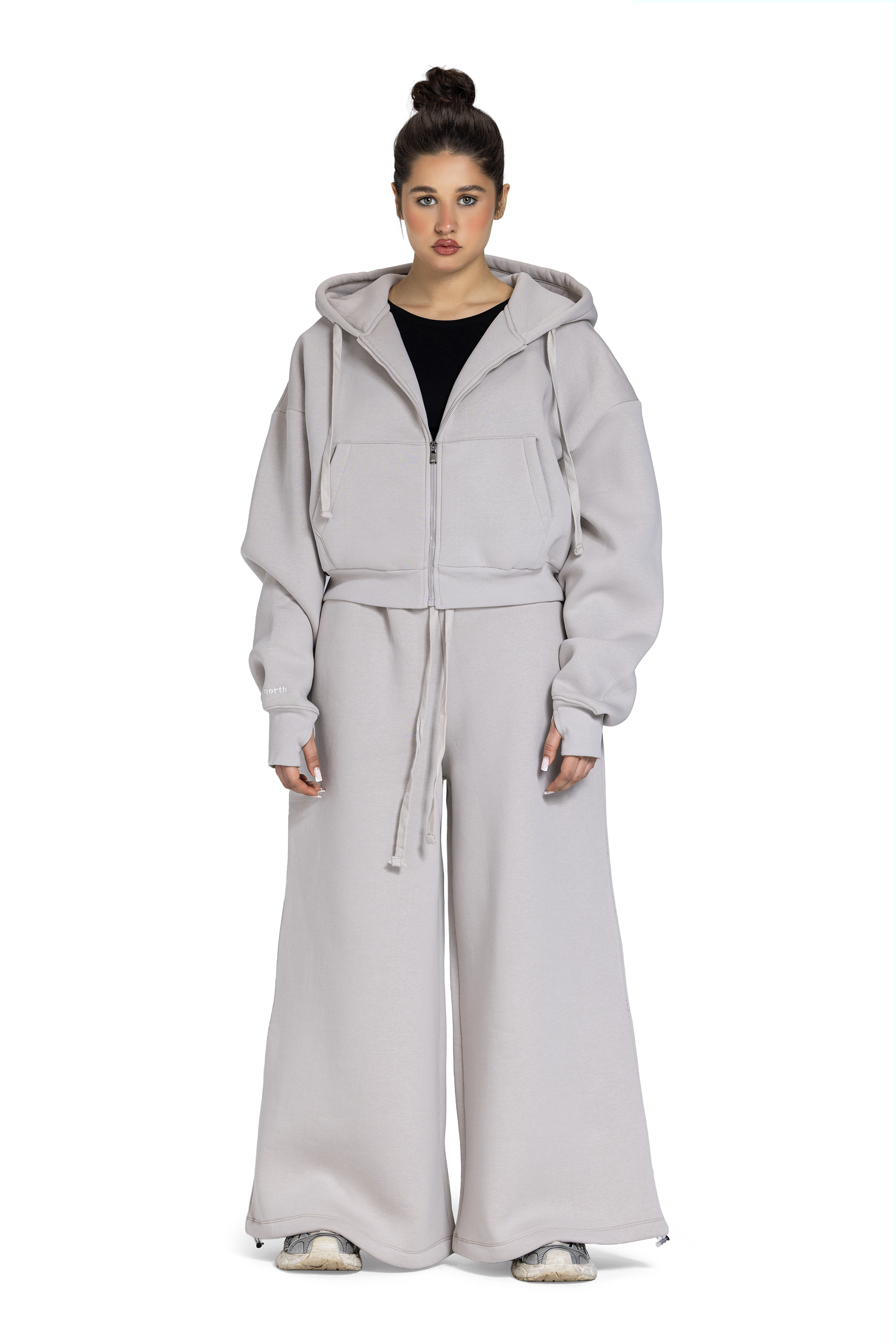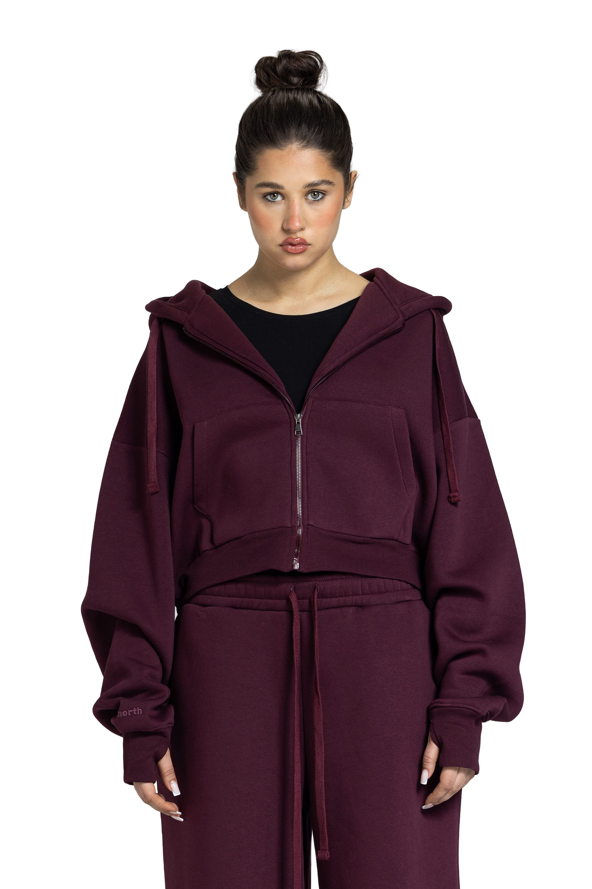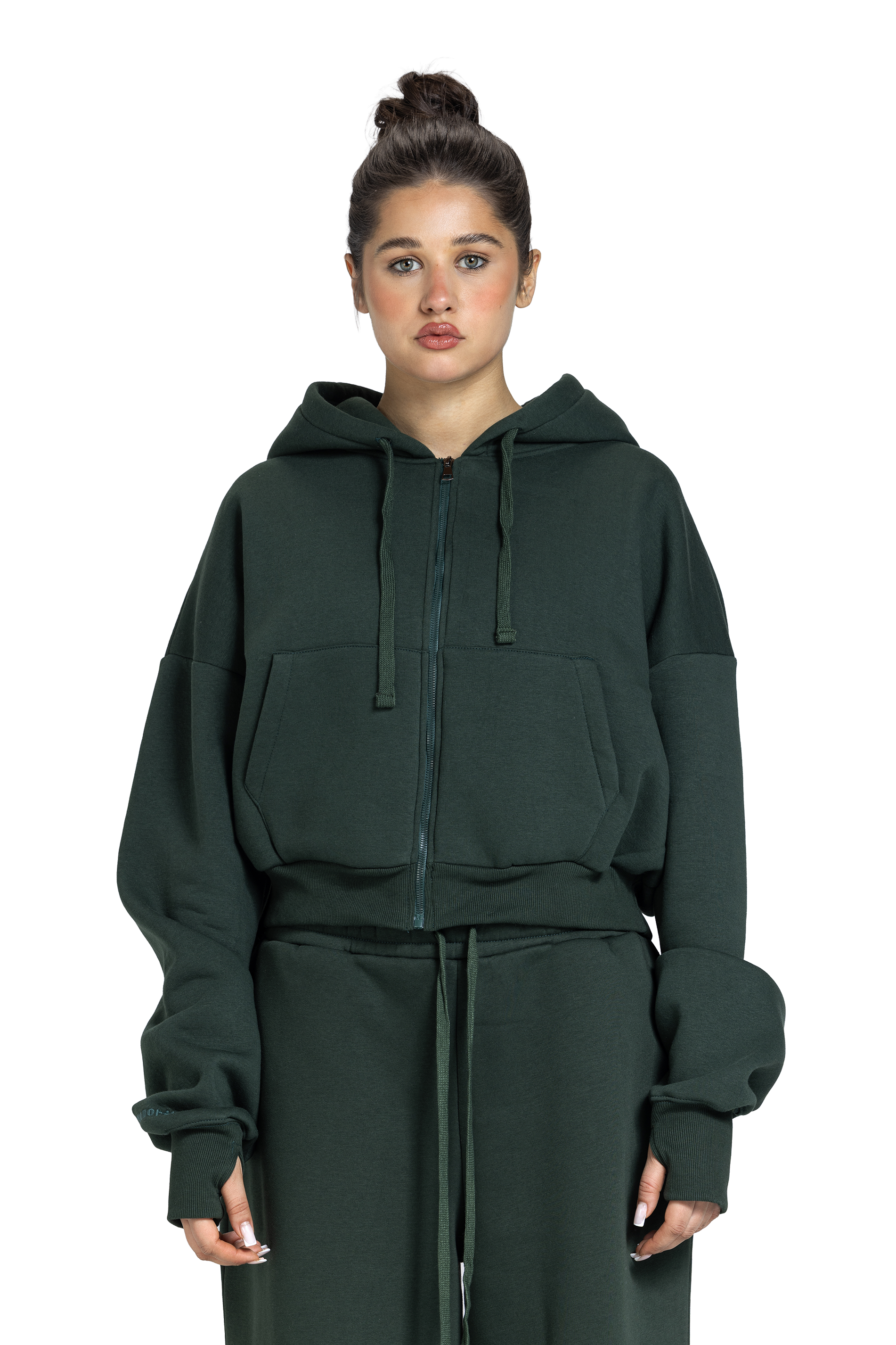 Women’s cropped zip-up jacket crafted from soft cotton milton fabric. Lightweight yet warm, making it perfect for winter layering. Designed with a relaxed silhouette, long sleeves, and a front zipper for easy wear. Features ribbed hem and cuffs for a clean, structured finish. Versatile and street-ready for everyday style.